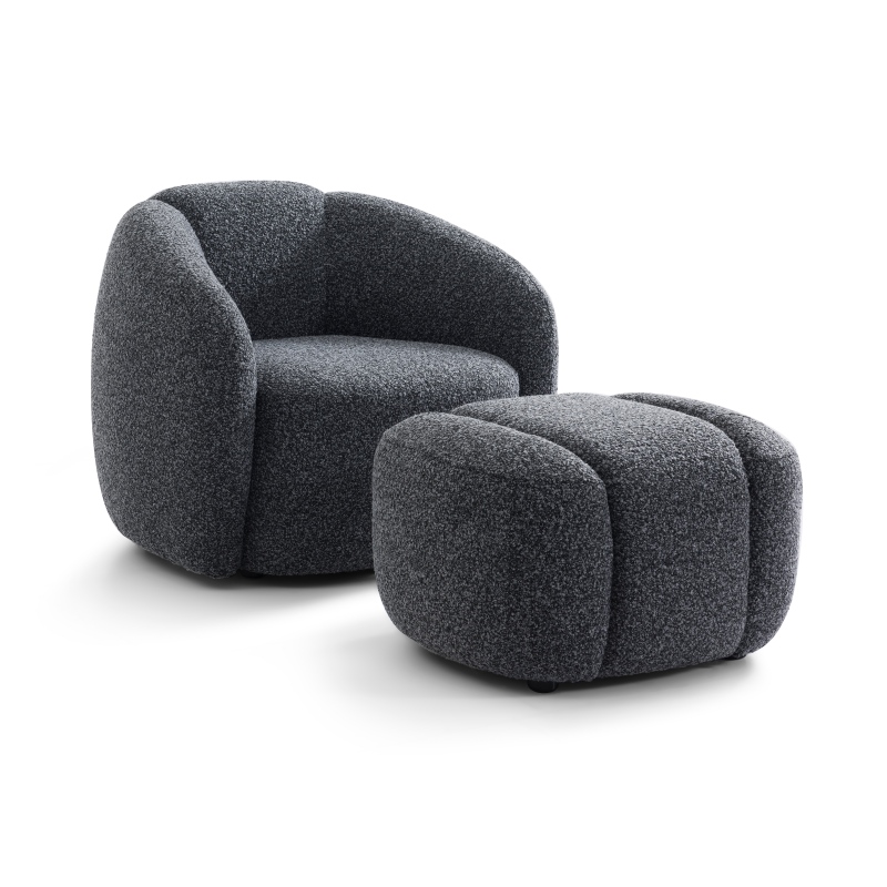 This dark grey curved accent armchair redefines modern comfort with its thoughtfully balanced silhouette and refined softness, crafted to elevate any living space with its understated luxury. Defined by its seamless curved frame, luxuriously tactile upholstery, and perfectly padded support that delivers a moderate sit feel, it offers immersive relaxation that is neither too soft nor too firm, making it the ultimate statement piece for contemporary interiors.
