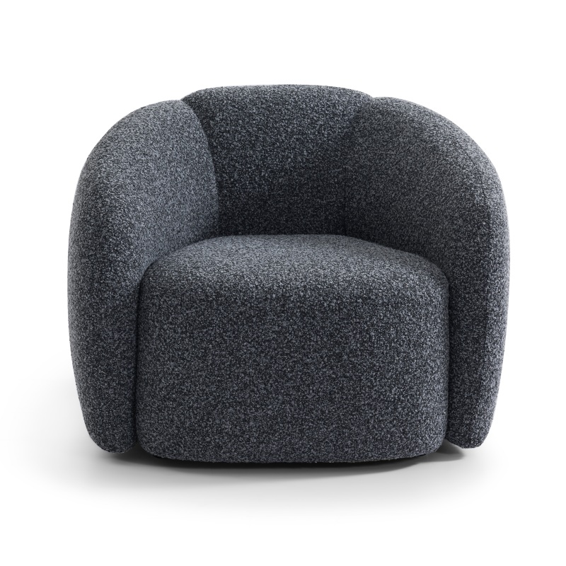 Upholstered in a sumptuously soft, textured dark grey fabric, this chair exudes a warm, inviting texture that feels like a cozy embrace the moment you sit down. The continuous curved back and integrated armrests are padded with a precision blend of high-resilience foam—engineered for a balanced, medium-firm sit that cradles your body without sinking excessively. This thoughtful padding creates a fully enveloping seating experience that contours perfectly to your shape, providing durable support for reading, conversing, or simply unwinding. The solid, stable base ensures lasting durability and a clean, unbroken silhouette, turning every moment of rest into a serene, grounded escape.
