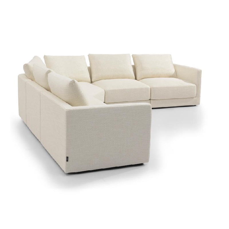 The SCIHOME sectional is generously sized, offering ample seating space without overwhelming the room. Its clean lines and minimalist design are punctuated by subtle details that elevate its aesthetic appeal. Each seat cushion is filled with high-resilience foam, ensuring long-lasting comfort and support.
