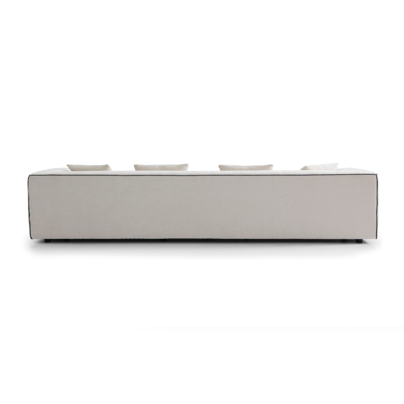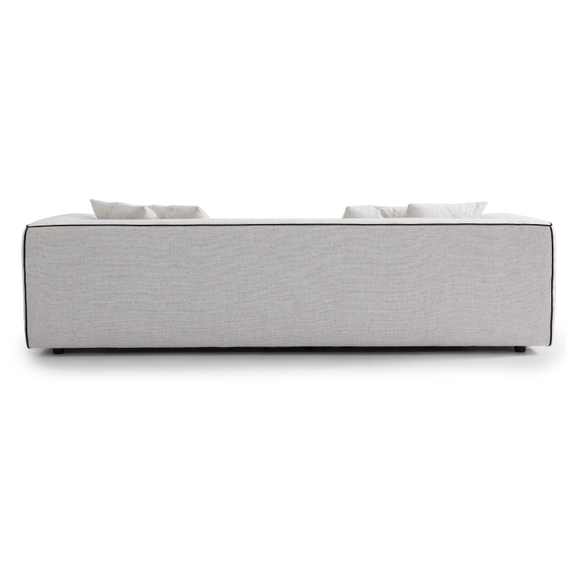 Designed with a “bold minimalism” ethos, this sofa elevates the clean lines of modern design with a signature detail: sleek black contrast piping that traces every edge of its angular armrests and modular frame, adding depth, definition, and a sophisticated, tailored finish. The bright cream white hue, a timeless warm neutral, brightens dark spaces and harmonizes effortlessly with any decor palette, from minimalist monochrome to warm Scandinavian and contemporary interiors. Its modular structure offers flexible layout options, while the iconic contrast piping ensures it stands out as a focal point, creating a chic, inviting retreat where style and comfort coexist perfectly.