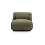 This sofa is designed with a focus on versatility, featuring modular components that can be freely combined to suit different room layouts and usage needs. The sofa has smooth, rounded contours and a uniform green fabric, exuding a sense of understated luxury and modern charm.