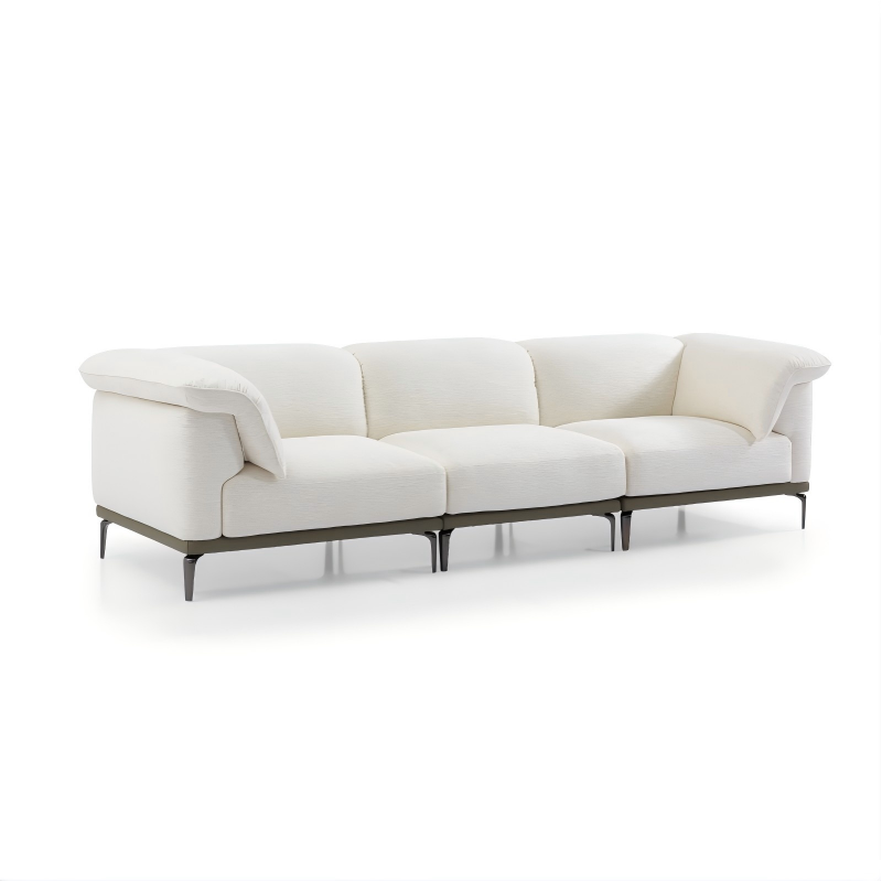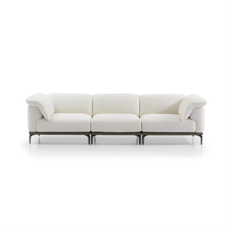 Designed with versatility in mind, its modular structure allows free combination to adapt to various room layouts and usage needs. The sofa’s clean lines and neutral upholstery exude understated luxury, while the tufted details on the backrest and armrests add a touch of sophistication.