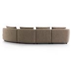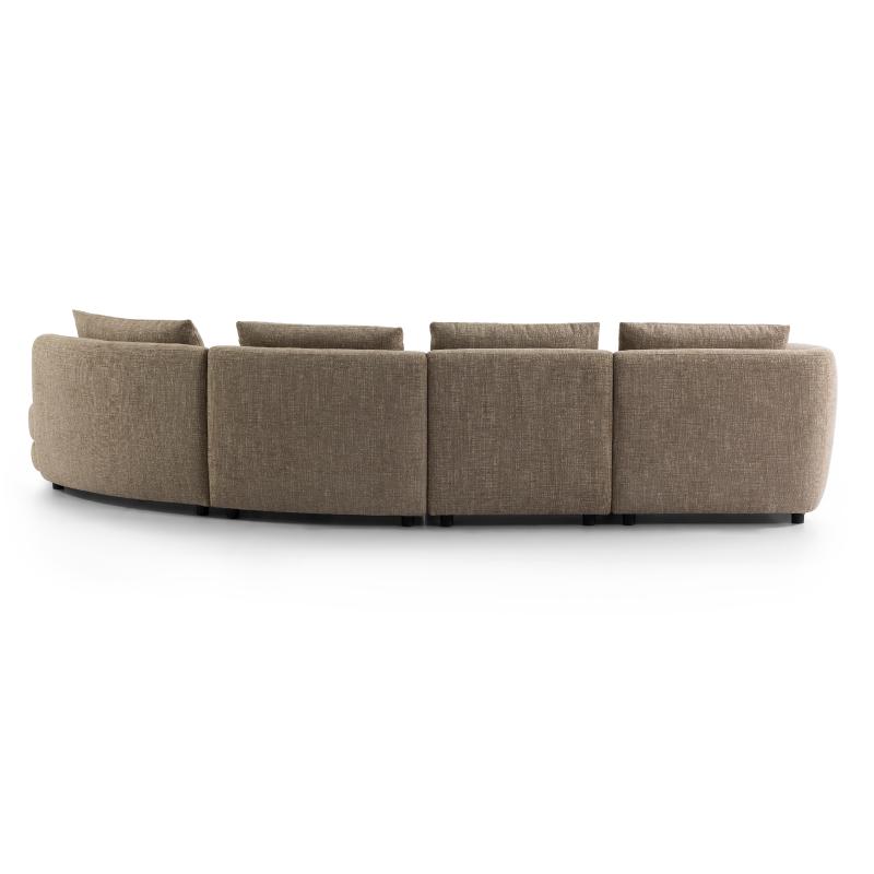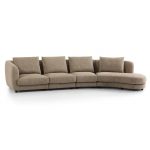 This curved modular sofa is upholstered in linen fabric with a warm natural light brown hue. Its modular splicing design offers both flexibility and a cozy enveloping feel; the curved silhouette softens spatial lines, while plump cushions and seat pads deliver a comfortable sitting experience, making it suitable for modern minimalist and light luxury home styles.