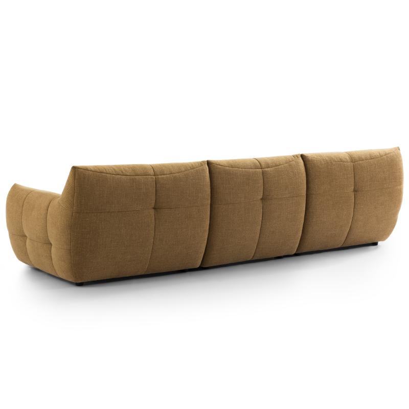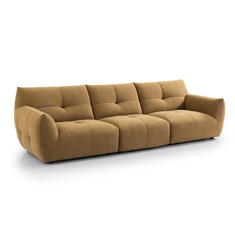 The minimalist design, defined by its bold, sculpted silhouette and deep button-tufted detailing, offers striking visual appeal while remaining versatile in styling. This sofa seamlessly fits into a range of interior aesthetics, making it a timeless addition to your home. The generously proportioned seat provides ample space for three adults to sit comfortably, while the curved armrests add a soft, organic touch to the overall design, enhancing both comfort and visual harmony.
