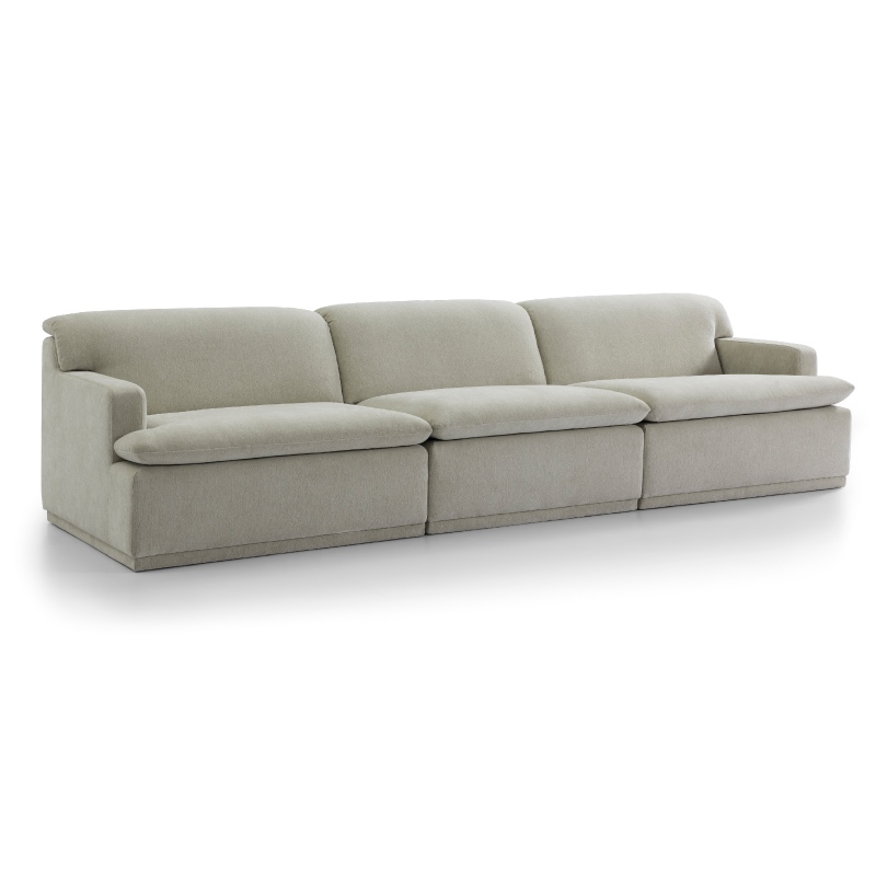 This light modular upholstered sofa redefines effortless luxury with its cloud-like comfort and understated modern design, crafted to be the ultimate centerpiece for contemporary living spaces. Defined by its oversized sink-in cushions, clean modular structure, and soft muted sage hue, it delivers uncompromising relaxation and timeless style, making it the perfect blend of form and function for modern homes.