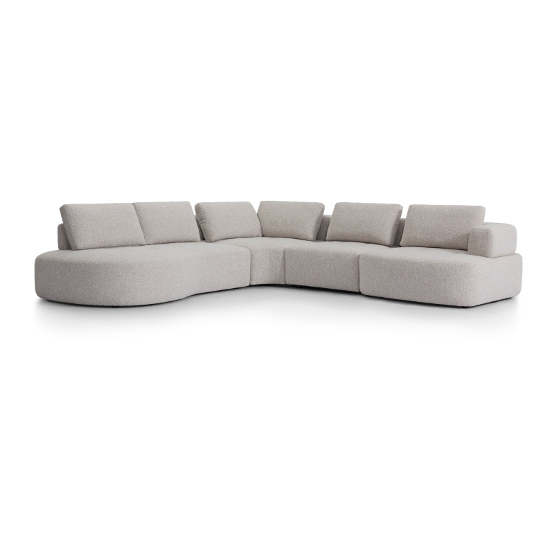 This light curved modular upholstered sofa redefines modern living with its fluid, organic silhouette and cloud-like comfort, crafted to become the ultimate centerpiece for open-concept and spacious living areas. Defined by its seamless curved layout, plush modular cushions, and soft neutral hue, it delivers immersive relaxation and timeless, understated luxury, making it the perfect blend of form and function for contemporary homes.