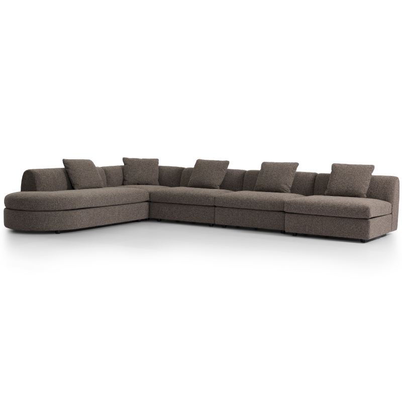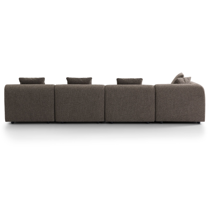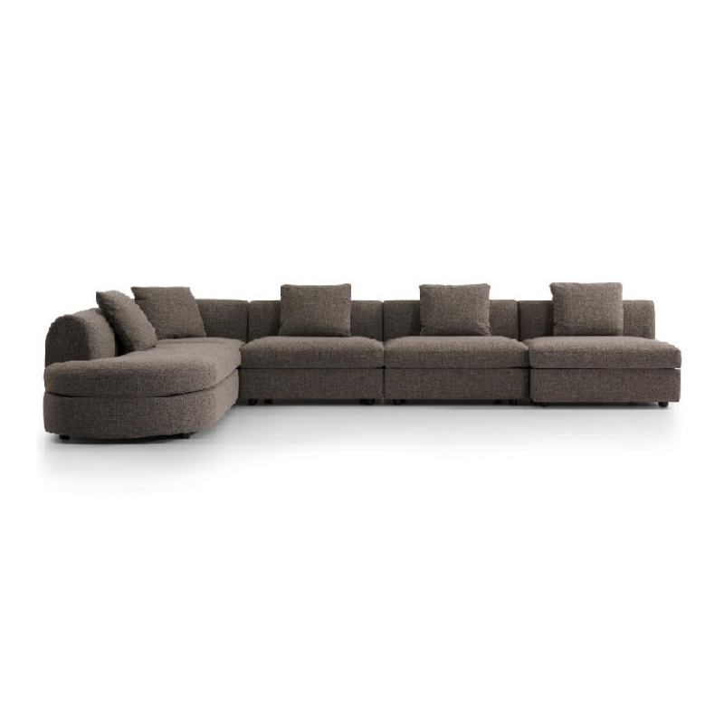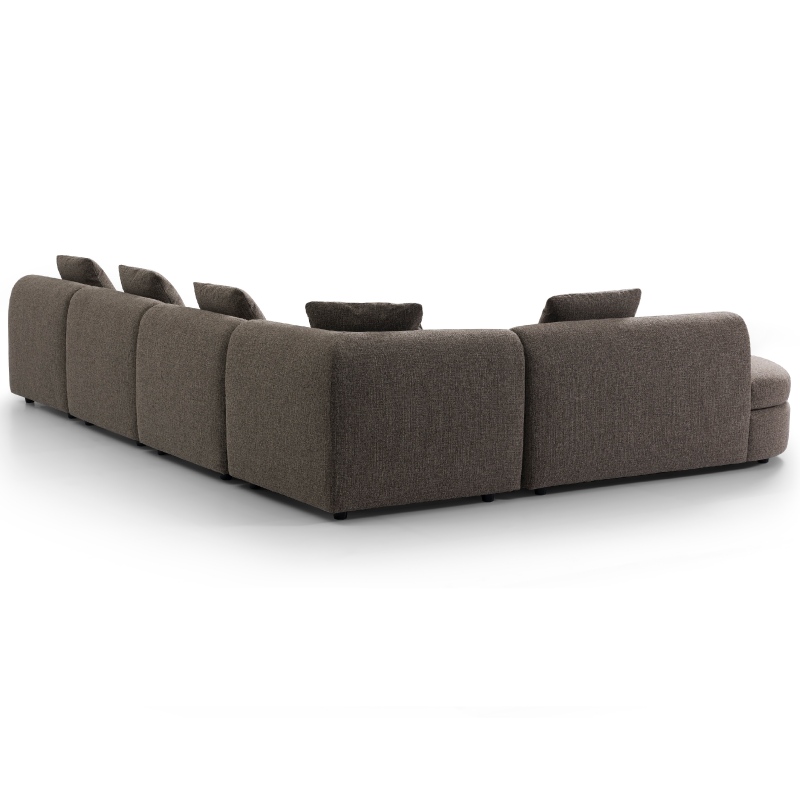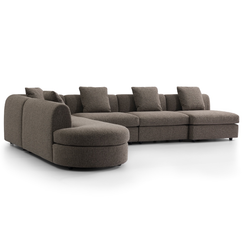 This taupe upholstered modular sofa is a perfect fusion of aesthetic design and practical functionality. With its flowing curved lines, ergonomic padded support, durable easy-care woven fabric, and versatile neutral hue, it not only meets the core needs of daily lounging but also elevates the overall texture of the living room. It is an ideal choice for creating a high-quality, healing living space.