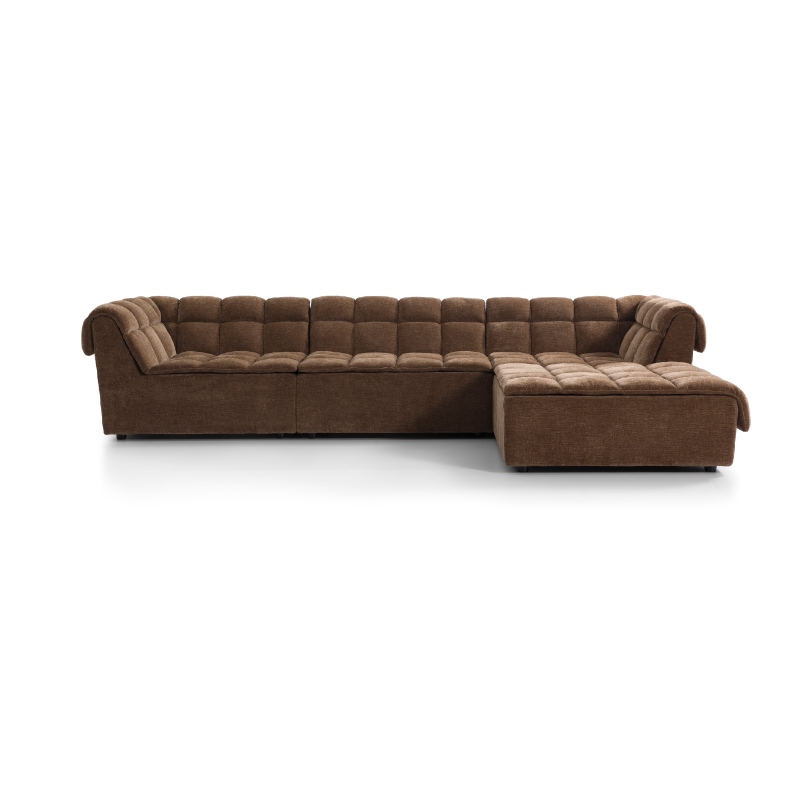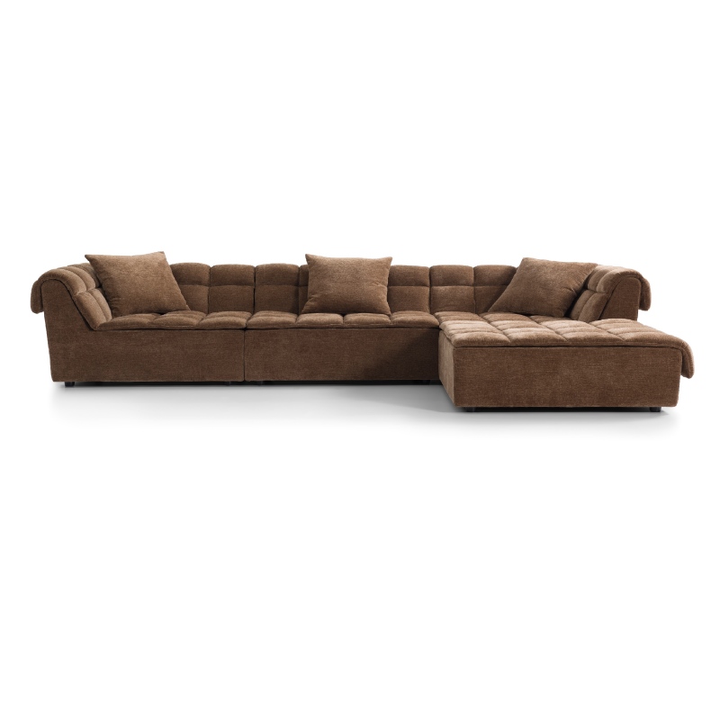 Upholstered in a luxuriously soft warm brown fabric with a subtle tactile texture, this sofa exudes timeless warmth and opulence from every angle. Every seat, backrest, and chaise cushion is meticulously tufted in a precise grid pattern, creating a structured, plush surface that balances gentle sink-in comfort with long-lasting shape retention. The cushions contour perfectly to your body, while the tufted back and armrests provide targeted ergonomic support. Whether you’re hosting movie nights, stretching out on the chaise for a nap, or gathering with loved ones, it wraps you in a luxurious, supportive embrace that feels indulgent yet durable.