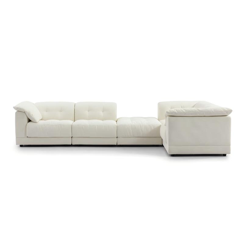 This modular fabric sofa with an ottoman features an elegant design and skin-friendly, breathable fabric, providing a soft and comfortable seating experience. Its flexible modular structure suits various room layouts, and the matching ottoman offers both extra seating and a place to rest your feet. Made with a solid wood frame, it is sturdy and durable, combining modern style with classic charm, making it an ideal choice for creating a warm and personalized living space.