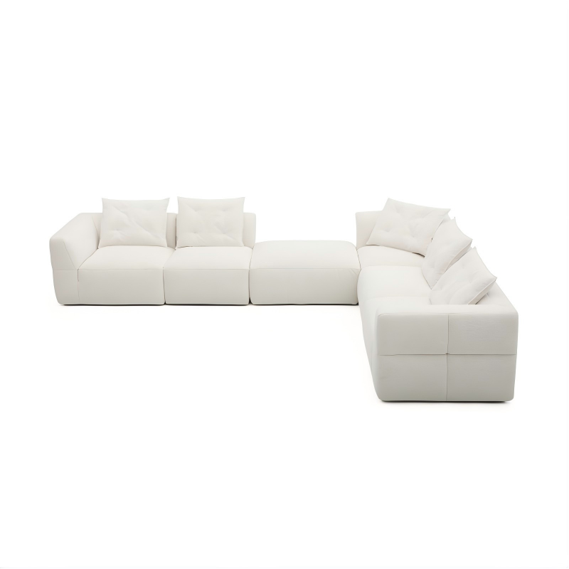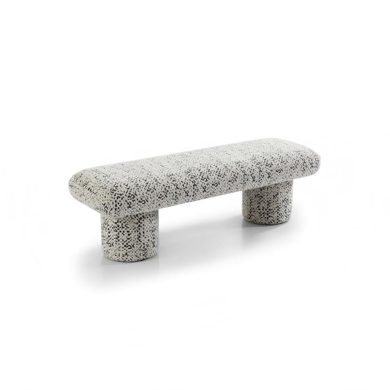 This round footstool features a unique stacked design of three cylindrical layers, with a full and solid structure that provides sturdy support. Each layer of the cushion is meticulously shaped, ensuring stability while adding depth and artistic charm to the overall look. The cushion filling is carefully controlled for optimal comfort, and the surface is covered with a durable, skin-friendly white textured fabric. The seating is moderately firm yet durable, ensuring long-term quality.