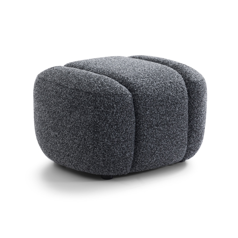 Upholstered in the same sumptuously soft, textured dark grey fabric as the accent chair, this ottoman offers a unified, sophisticated aesthetic. The channeled, rounded form is generously padded with a precision blend of high-resilience foam, engineered for a moderate sit feel that is neither too soft nor too firm. Whether used as a footrest to elevate your legs, extra seating for guests, or a standalone accent piece, it provides durable, supportive comfort that complements every moment of relaxation. The low-profile, stable base ensures lasting durability and a clean, unbroken silhouette, creating a seamless visual flow with the chair.