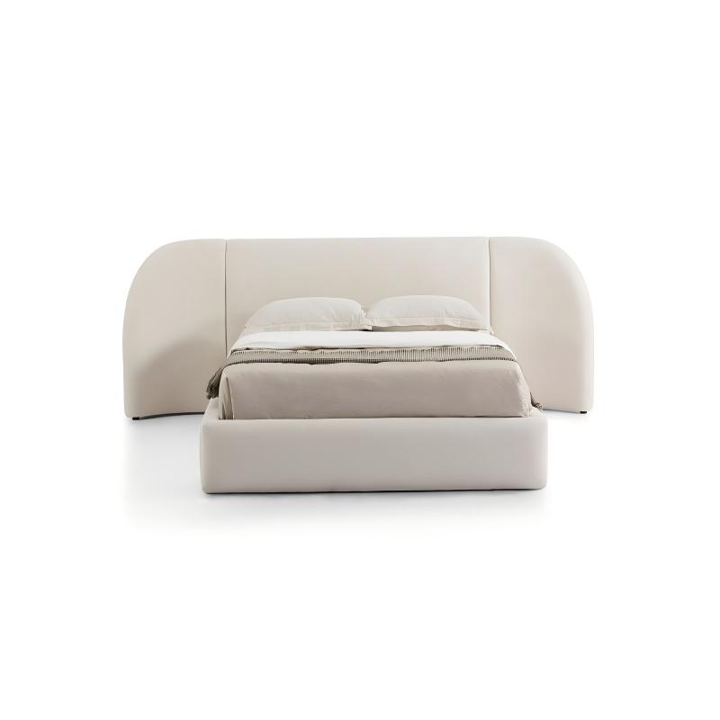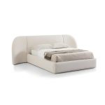 Introducing our luxurious modern upholstered bed, perfectly combining comfort and style to transform your bedroom into a sanctuary of relaxation. Its notable feature is a wide, soft, fully curved headboard upholstered in a soft, skin-friendly beige textured fabric, allowing you to lean back and enjoy your moments of relaxation.